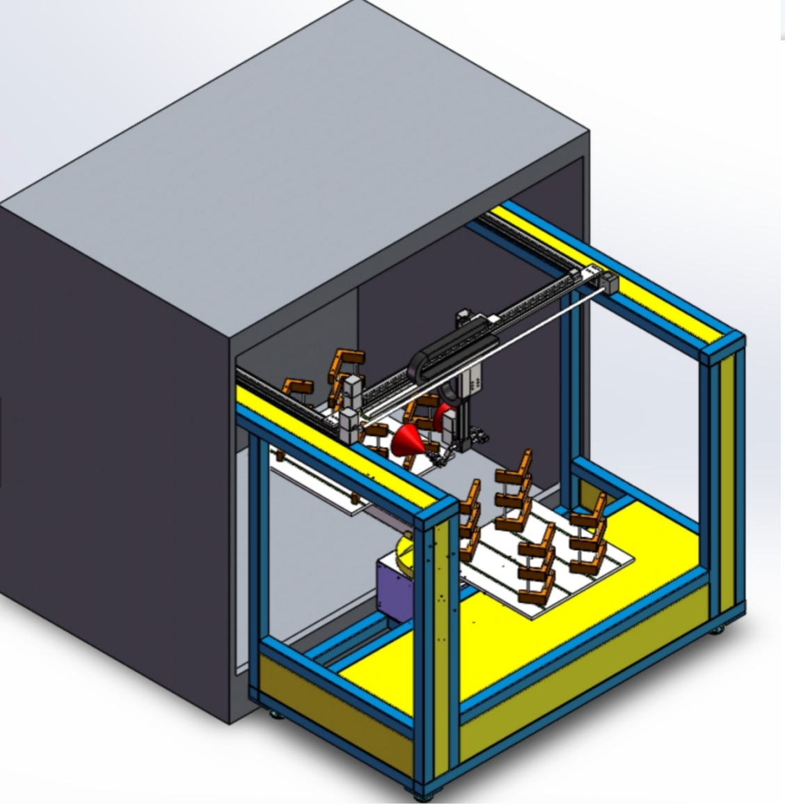 本工作站主要由工业机器人其附属装置,机器人离线编程软件、solidwork或CAD 3D软件、油漆压力桶、油漆流量控制阀、喷枪、转盘式喷涂台、喷漆房、气压驱动系统、控制柜、烟尘净化器、电脑调漆系统等组成。
